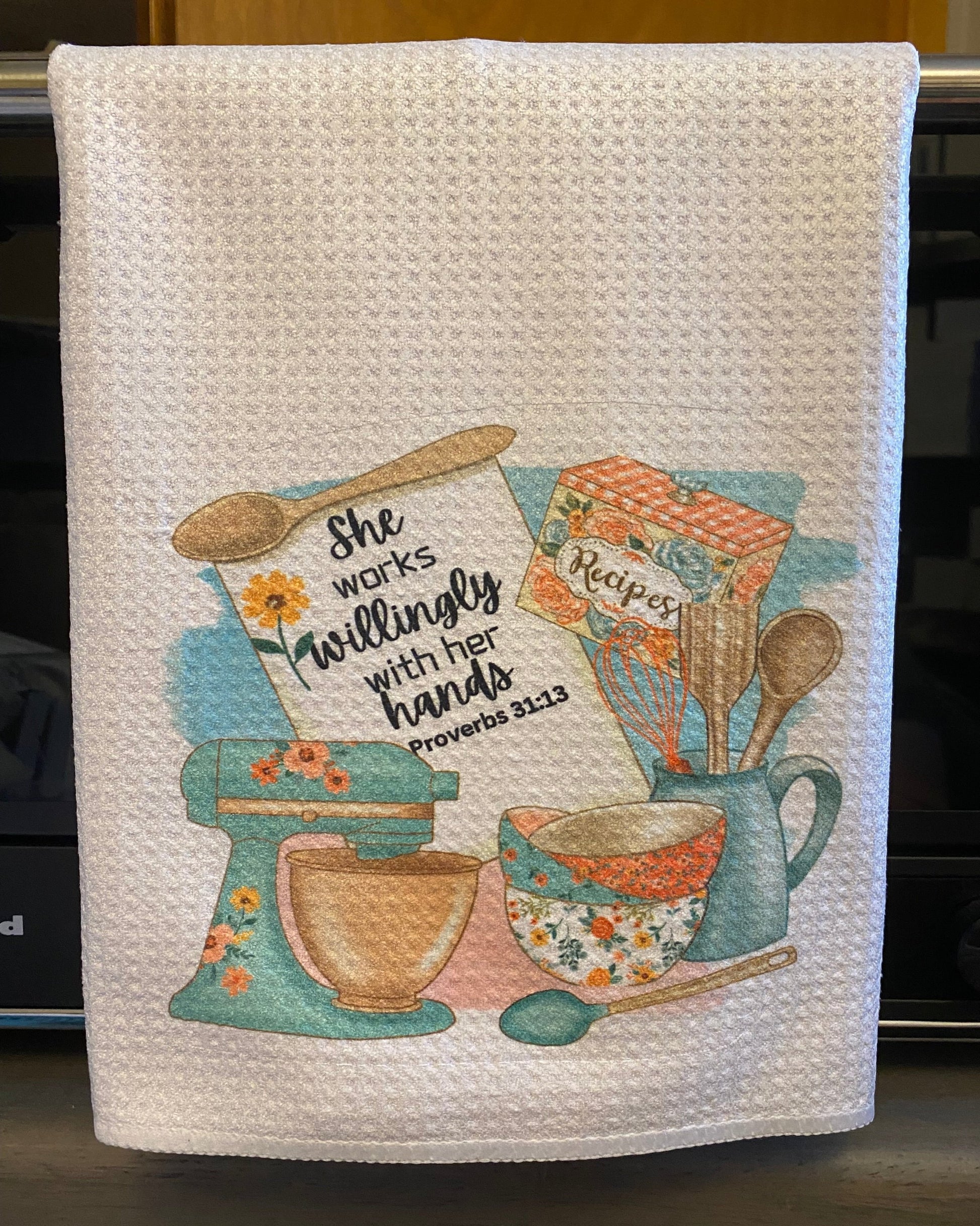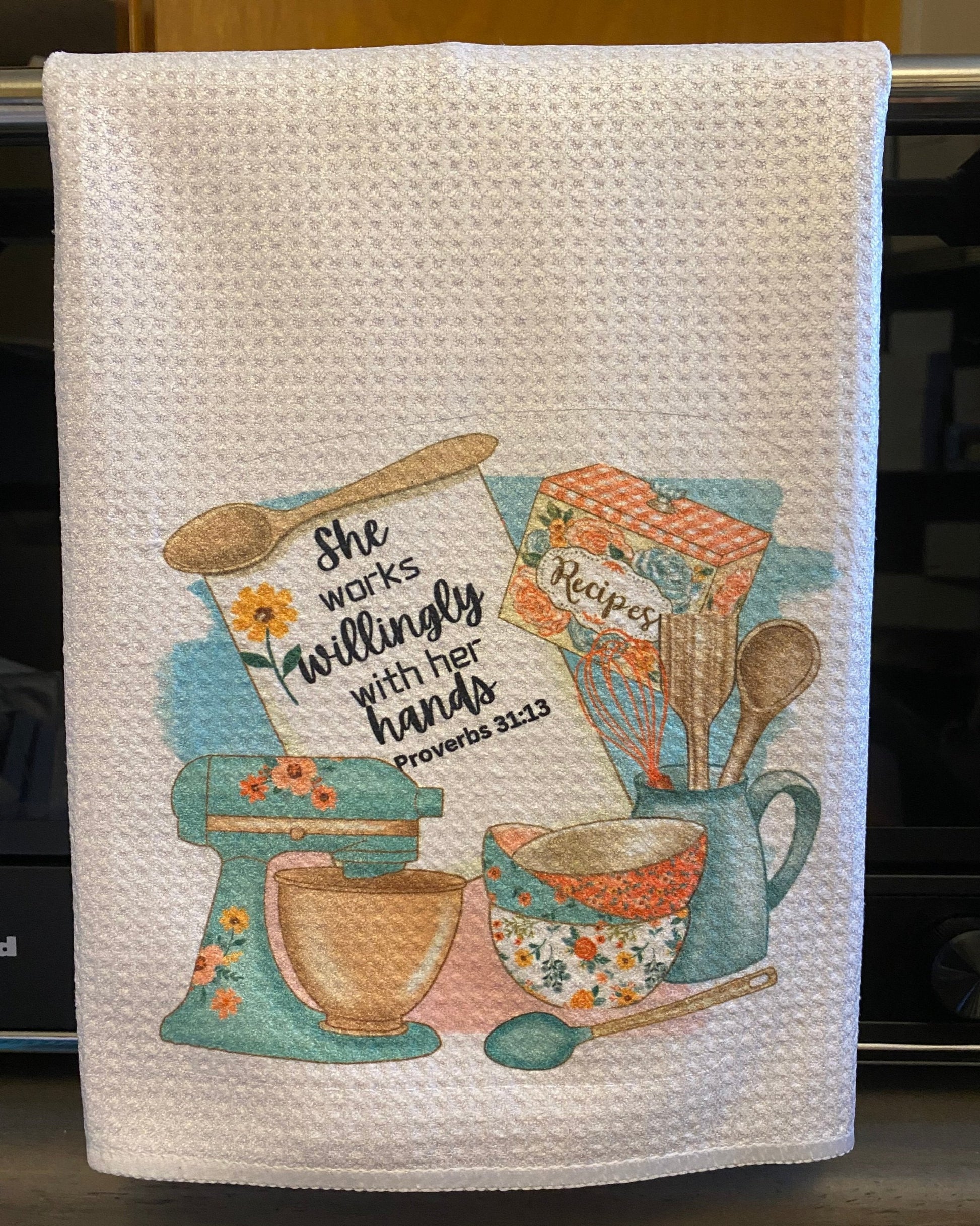 - Waffle weave 16 x 24 -100 % POLYESTER absorbent towels-Ive used them and love how they dry in dryer and how they dry dishes