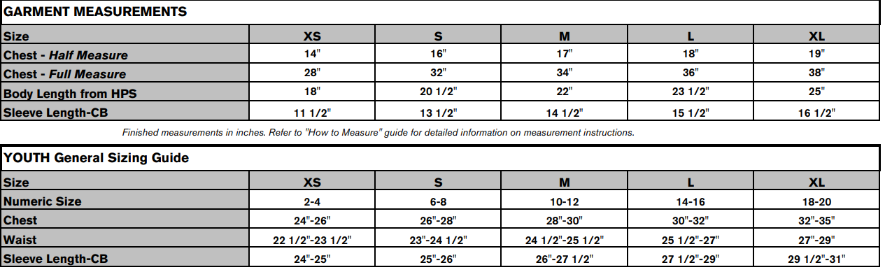 - Youth Sizes: XS(2-4), S(6-8), M(10-12), L(14-16),XL 18