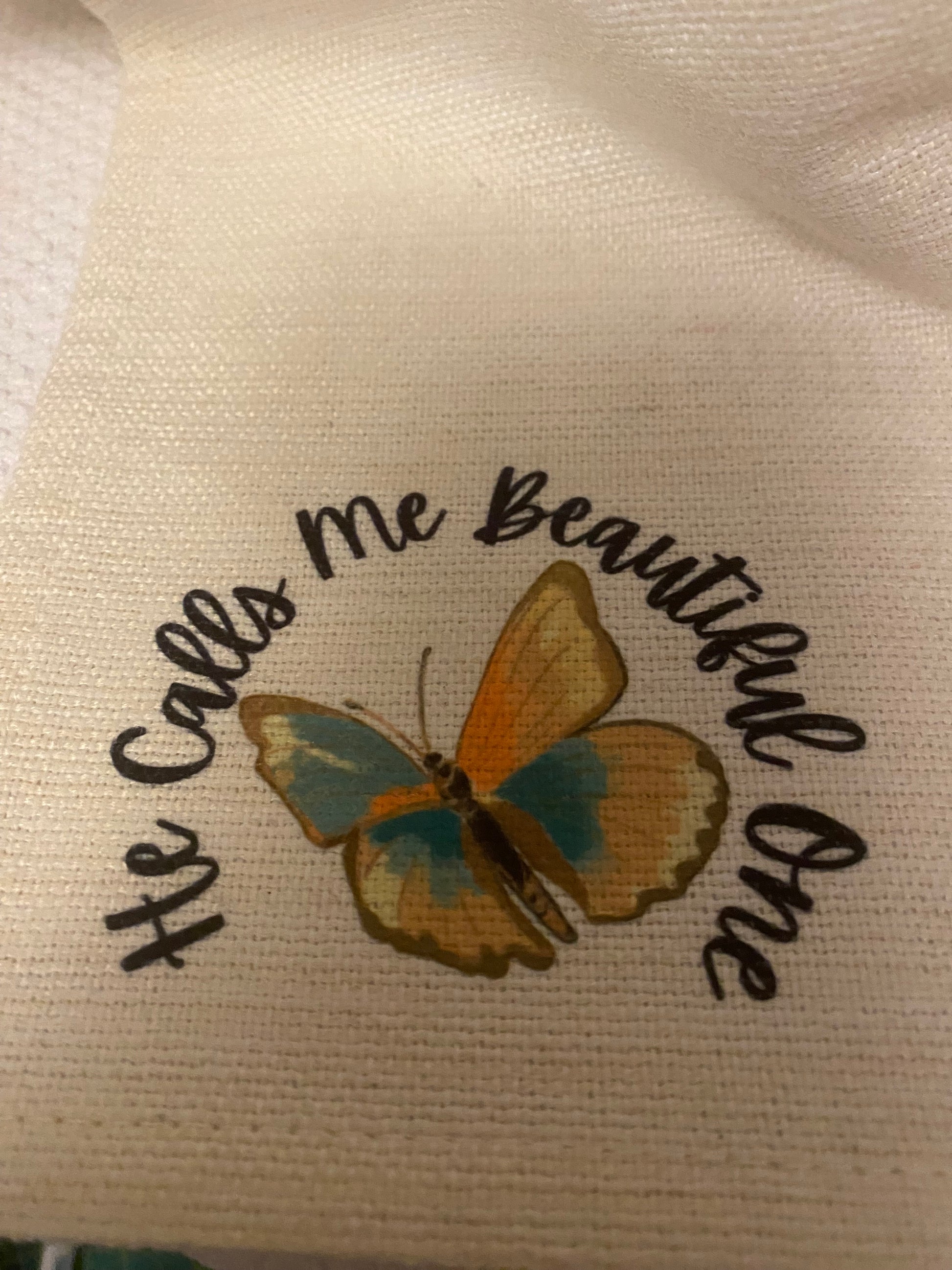 - Signature matching butterfly with He calls me Beautiful One on bottom corner reminding women they are beautiful in God's eyes